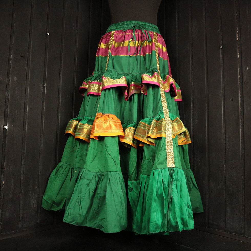 Each VAGABOND Skirt is handmade and completely unique. Roberta selects fabrics from up to 4 antique silk saris to create stunning jewel colour combinations in each skirt.