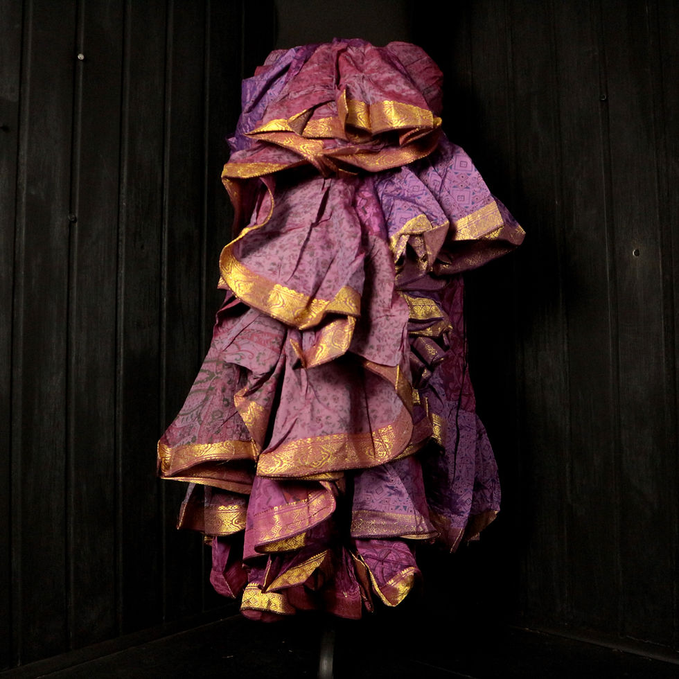 Our Glow Wrap Tops are crafted from antique sari silk in bold, jewel-toned colours, each with its own unique character. Designed for versatility, they can be worn as a casual wrap top or layered over a gown, bodice, or choli for added texture and drama.